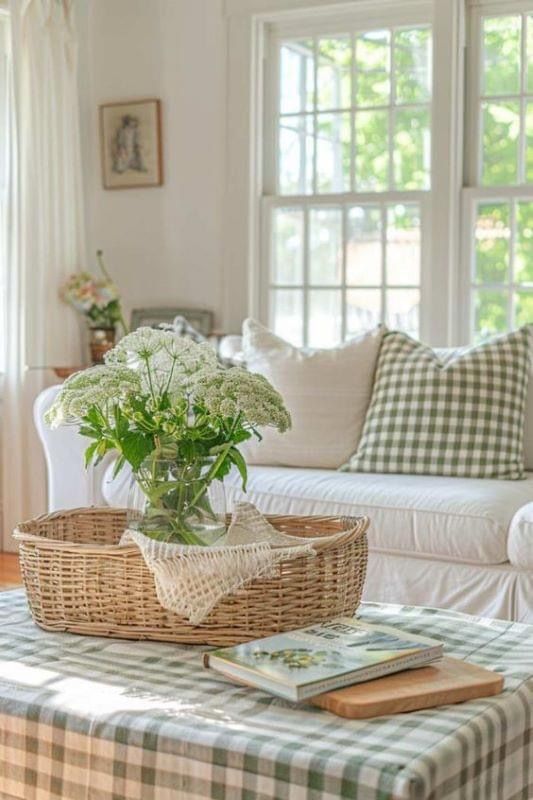 Estampas xadrez ou vichy em mantas, almofadas e poltronas;